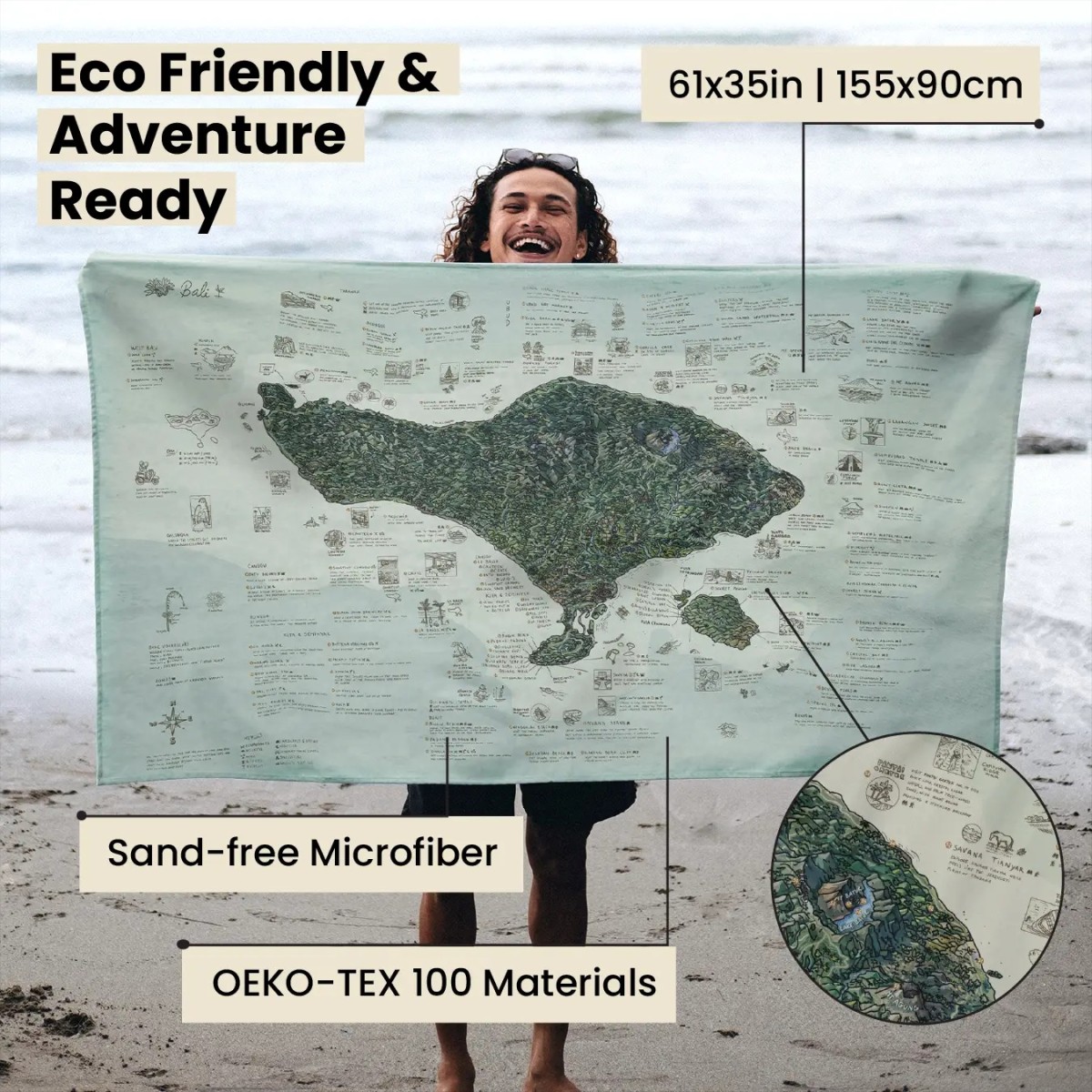 Awesome Maps Strandtuch / Badetuch „Bali Green Topography“ (155x90cm)