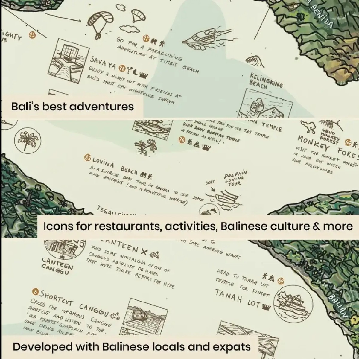 - für Liebhaber der Insel Bali – mit Icons für Restaurants, balinesische Kultur uvm. – von Bali-Experten und Locals entwickelt