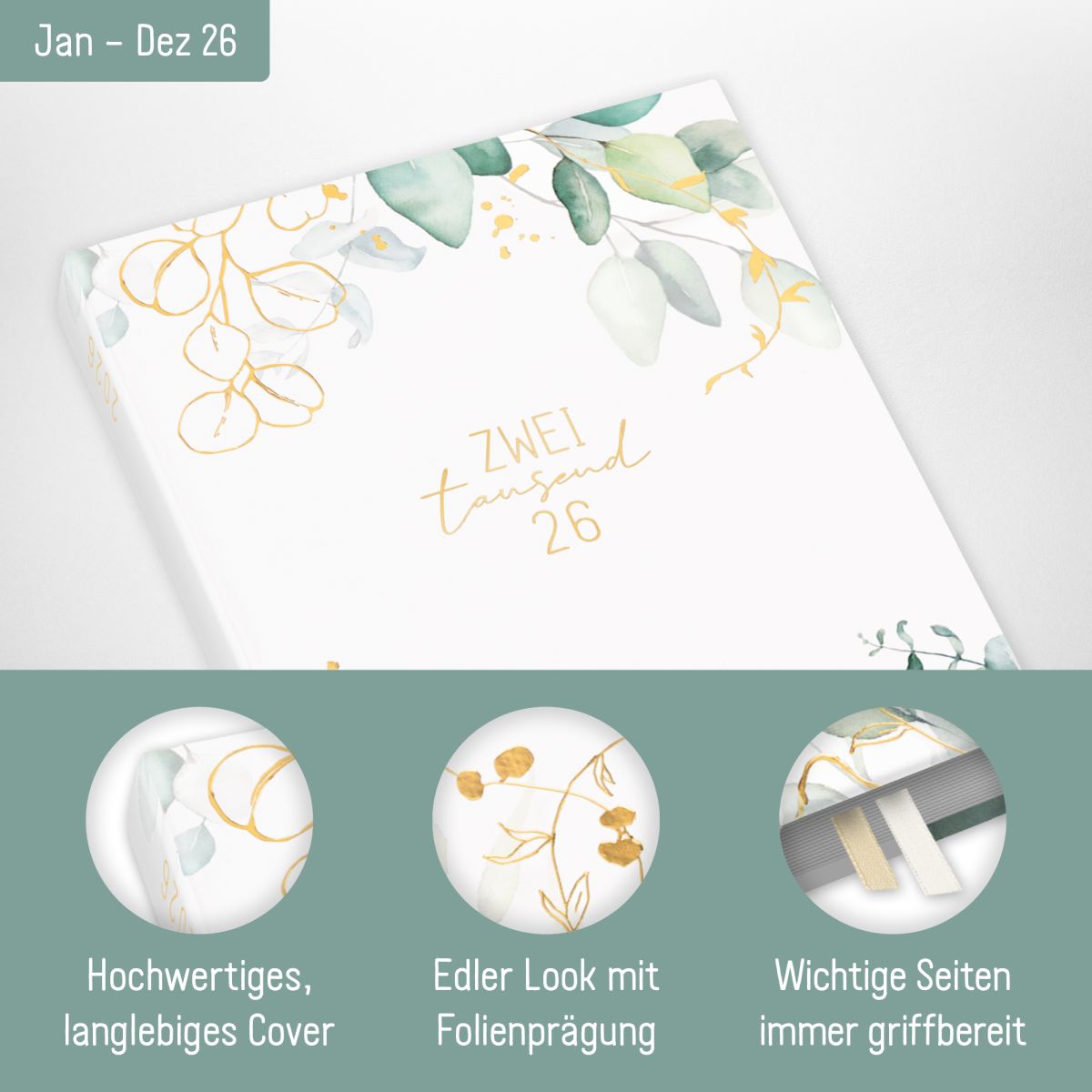 - LANGLEBIG & ROBUST – Das mit Folienprägung veredelte Flexo-Cover ist robust wie ein Hardcover und gleichzeitig flexibel wie ein Softcover. Es ist somit perfekt für den Berufsalltag und Geschäftsreisen geeignet. Die aufwendige Fadenbindung sorgt für ein angenehmes Aufschlagverhalten.