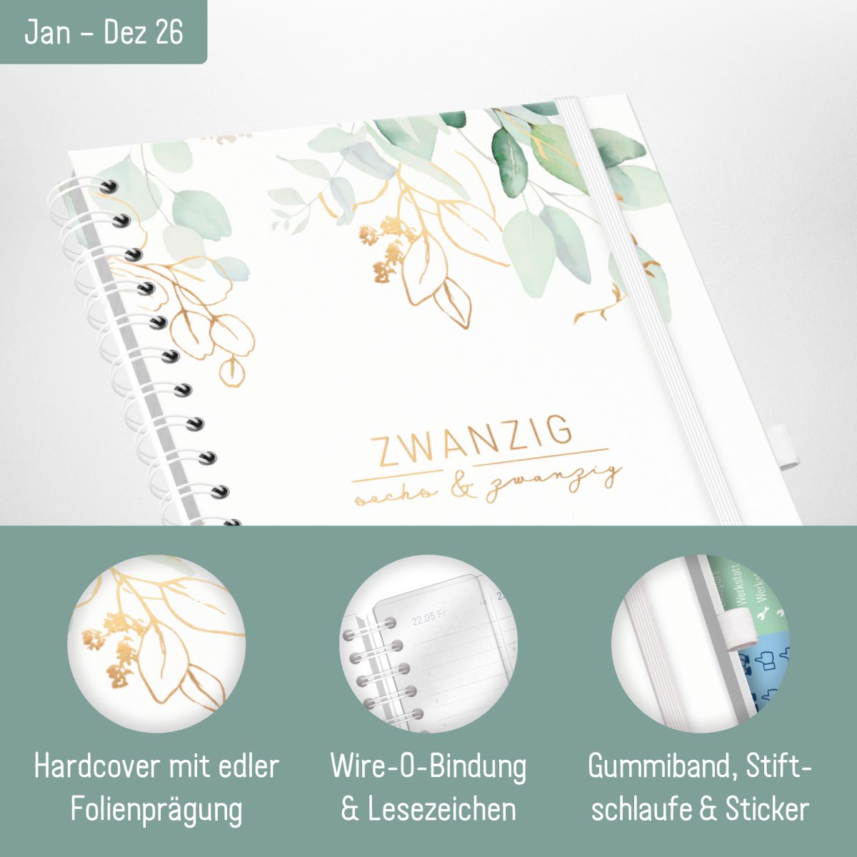 - NACHHALTIG & KLIMAFREUNDLICH – Planen mit gutem Gewissen: Der Umwelt zuliebe ist das reinweiße und extra dicke 120g/m² Premium-Papier FSC®-zertifiziert (FSC® N004440) und klimafreundlich bedruckt.