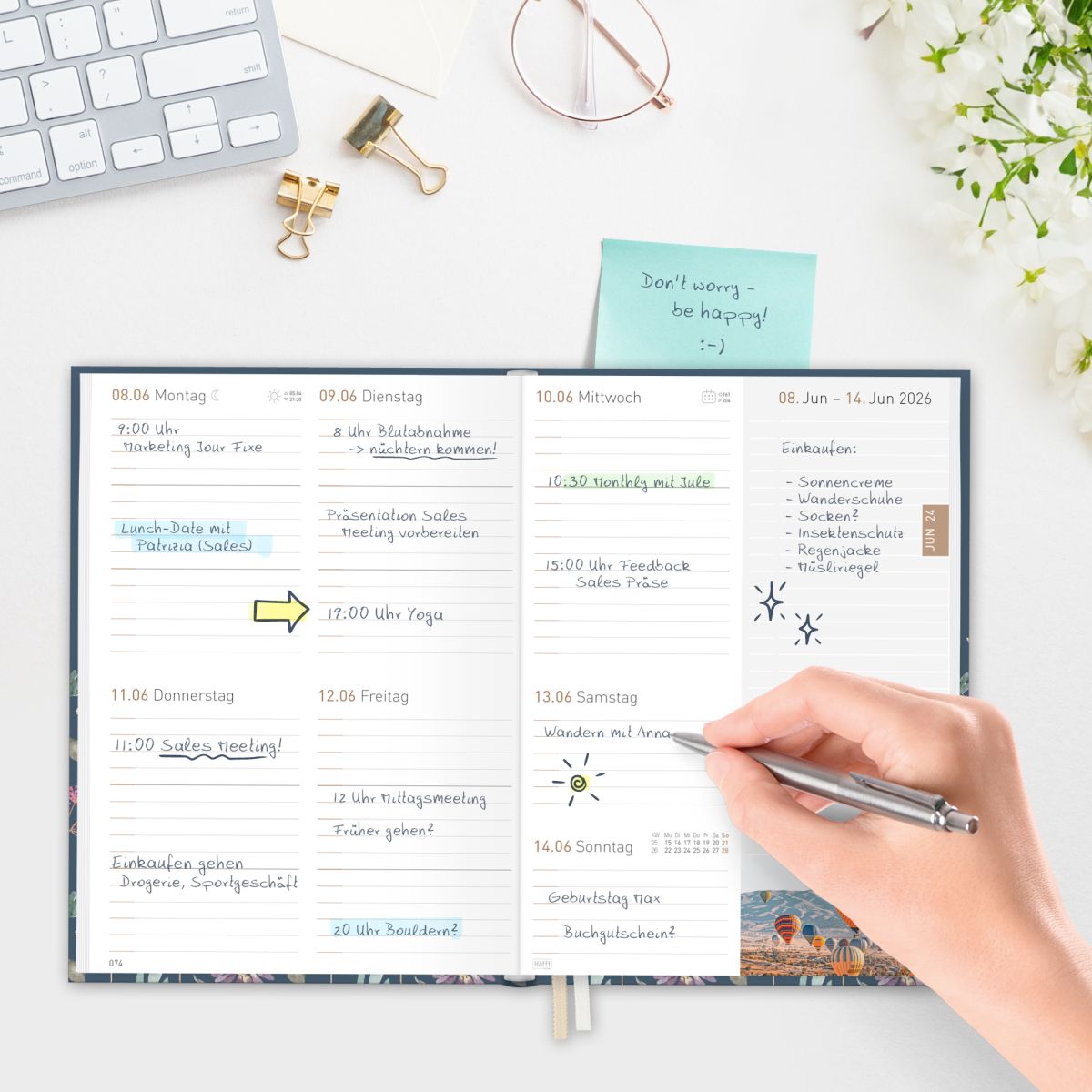 • LANGLEBIGER BEGLEITER – Der Einband mit matter Oberfläche und Glanzlack-Highlights ist robust und hochwertig verarbeitet, so dass die Freude am Planen lange anhält. Die aufwendige Fadenbindung sorgt für ein angenehmes Aufschlagverhalten.