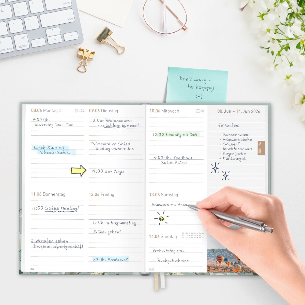• LANGLEBIGER BEGLEITER – Der Einband mit matter Oberfläche und Glanzlack-Highlights ist robust und hochwertig verarbeitet, so dass die Freude am Planen lange anhält. Die aufwendige Fadenbindung sorgt für ein angenehmes Aufschlagverhalten.