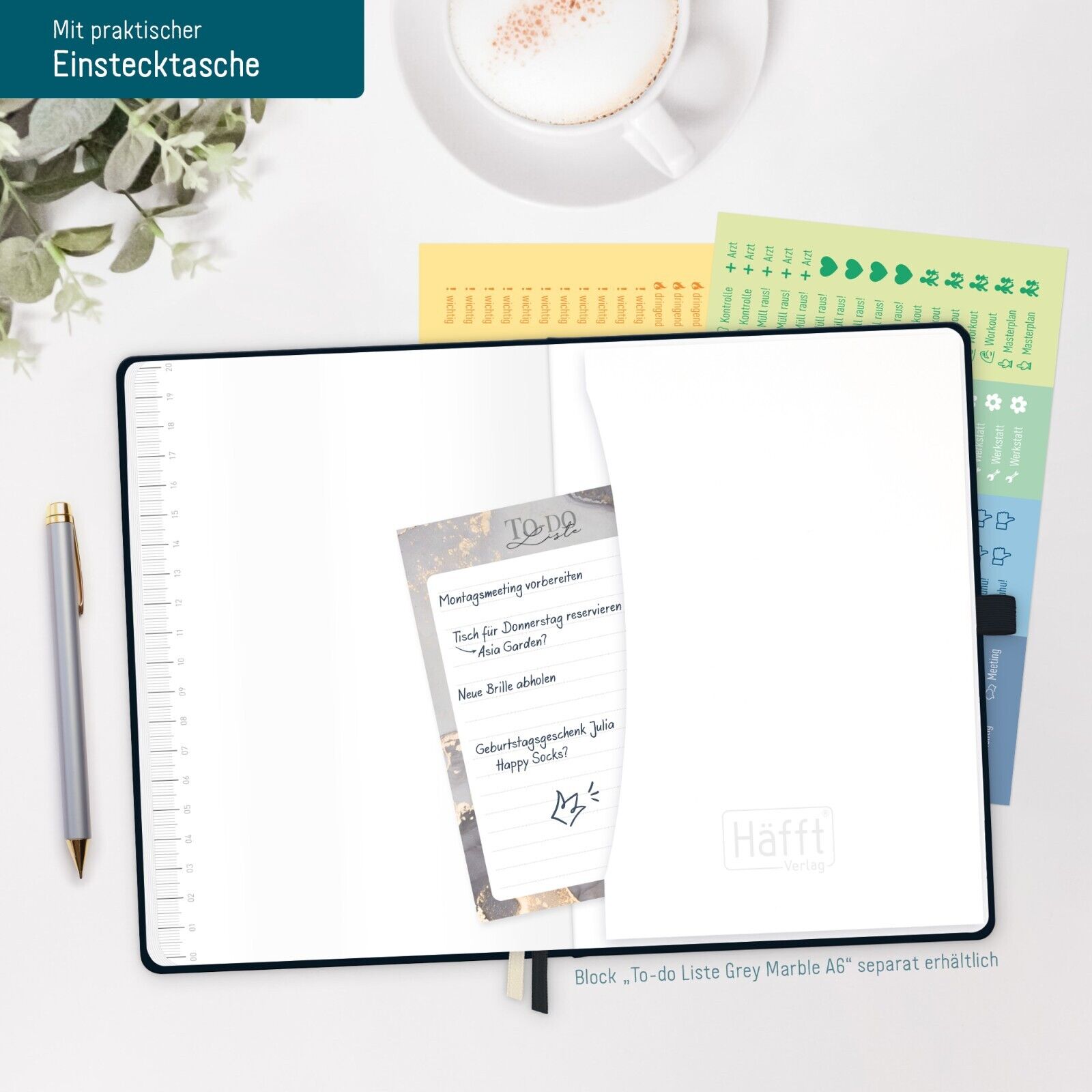 - Wochenplaner mit To-do-Listen, Tageszeitenunterteilung und einzigartigen Extras