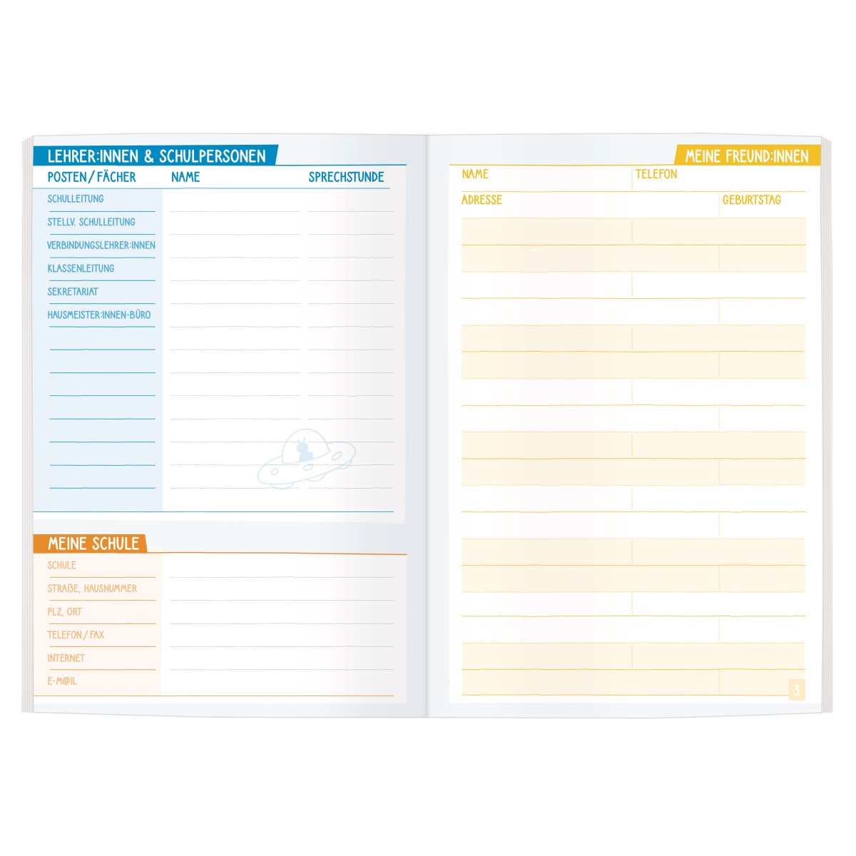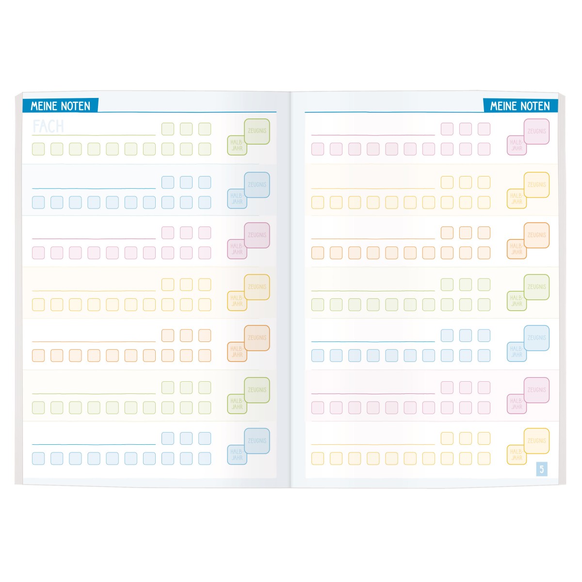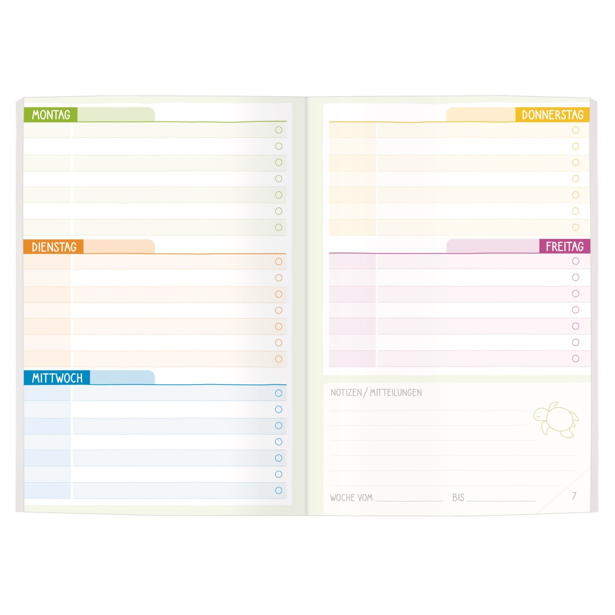 - undatiertes Hausaufgabenheft in fröhlichen Farben