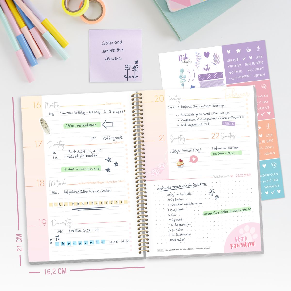 Häfft® College-Timer 2025/2026, der ultimative Schülerkalender für die Schule und ein bunter Terminplaner für Freizeit, Freunde und Spaß – nachhaltig & klimafreundlich.