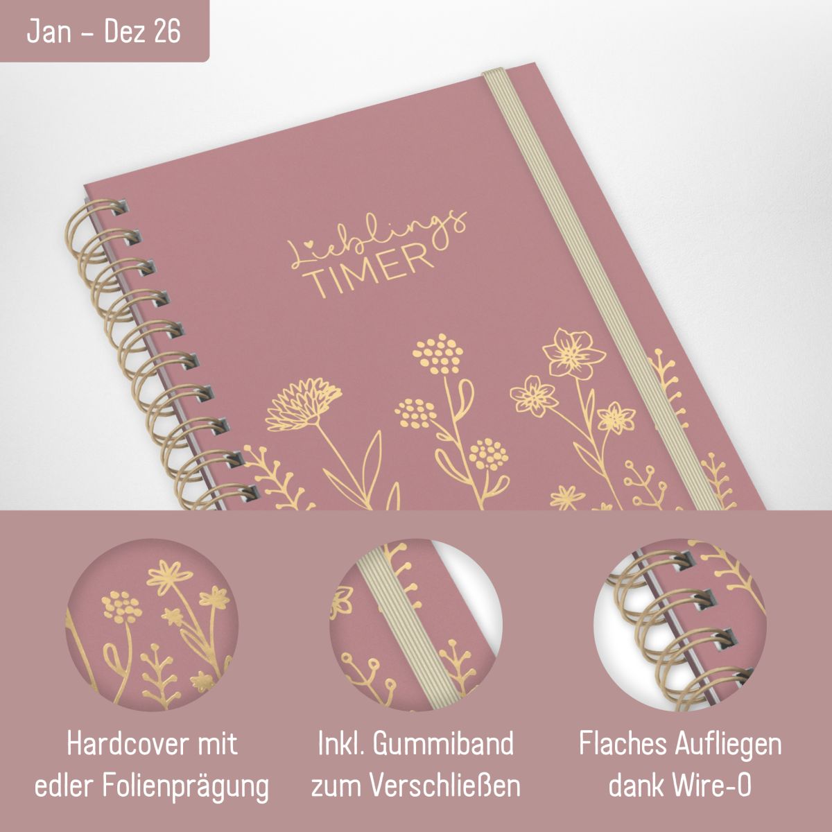 Lieblings-Timer 2026 / A5 / Fine Flowers Rosé / Häfft-Verlag