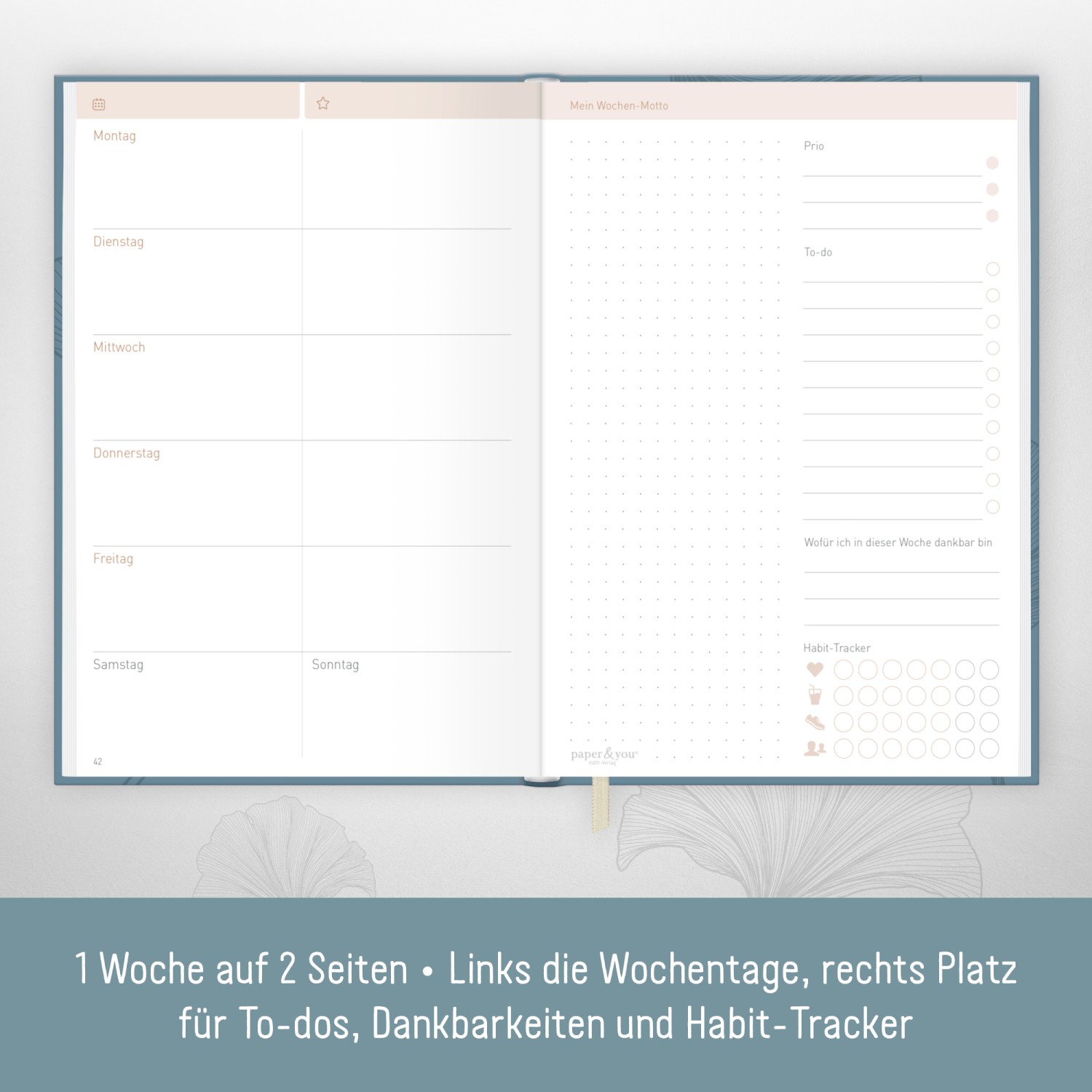 paper & you Work & Life Wochenplaner A5 / Blue Ginkgo / vom Häfft-Verlag
